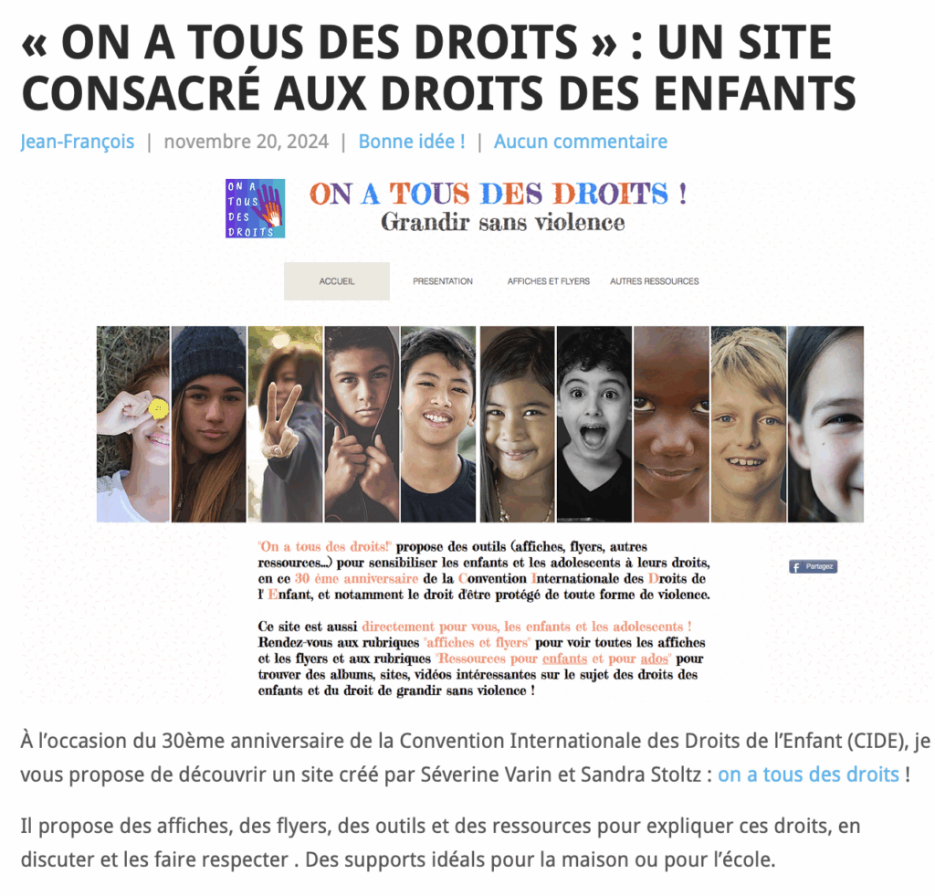 Je vous propose de découvrir des ressources autour des droits des enfants à l’occasion de la « Journée internationale des droits de l’enfant ».