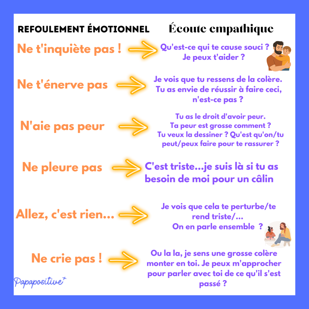 « Ne pleure pas », « ne t’inquiète pas », « n’aie pas peur »… voici des expressions qui peuvent, à force d’être répétées, bloquer l’accueil et la compréhension des émotions.
