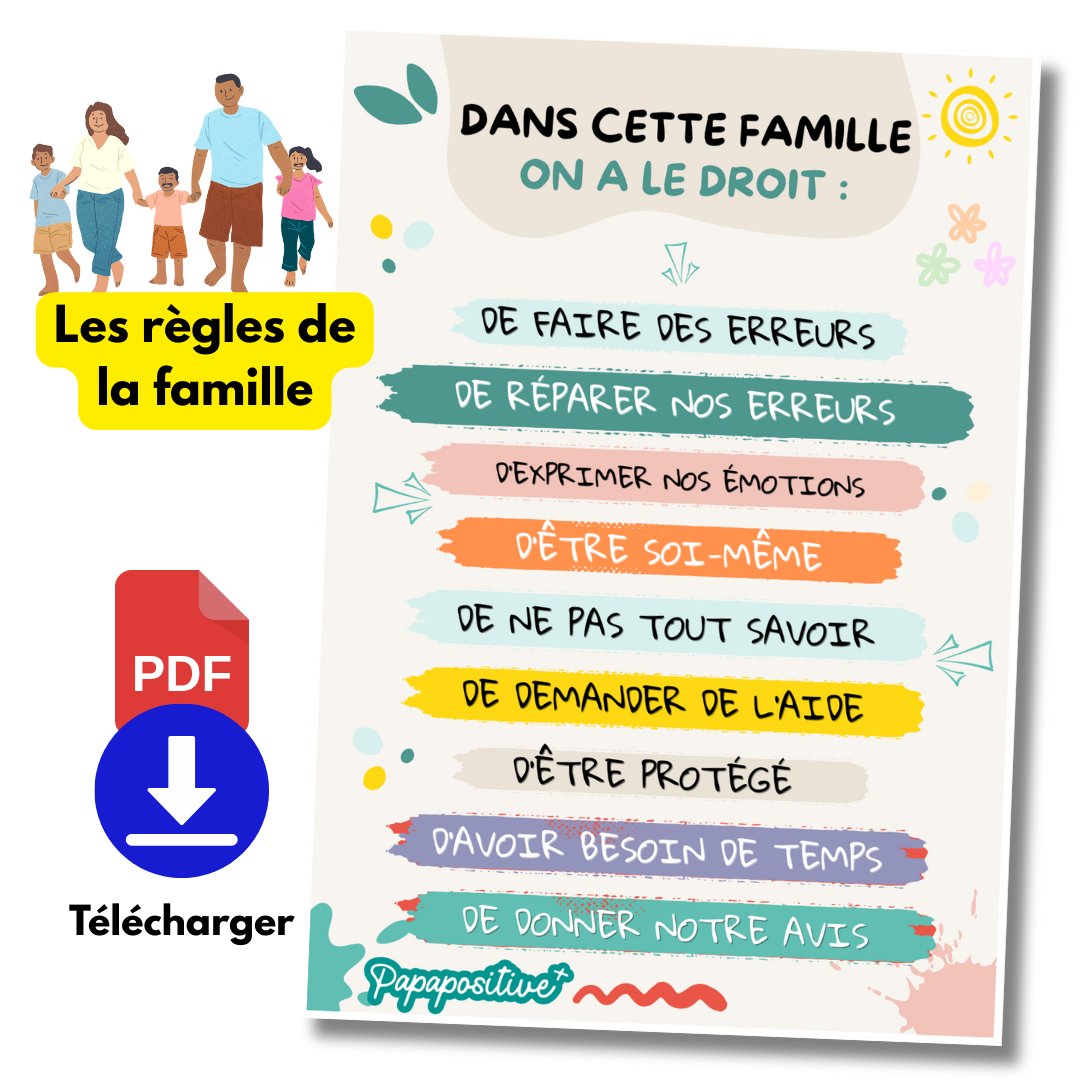 Voici une base qui pourrait vous inspirer avec la formulation « j’ai le droit … ». Pourquoi cette formulation ? parce que cette conscience du « droit » a pu disparaitre dans le cadre de notre propre éducation et que les enfants ont besoin d’intérioriser ces droits pour s’épanouir et mieux contribuer à la communauté. Et du « j’ai le droit » au respect des « règles », il n’y a q’un pas dans une logique de responsabilisation et de respect de tous :