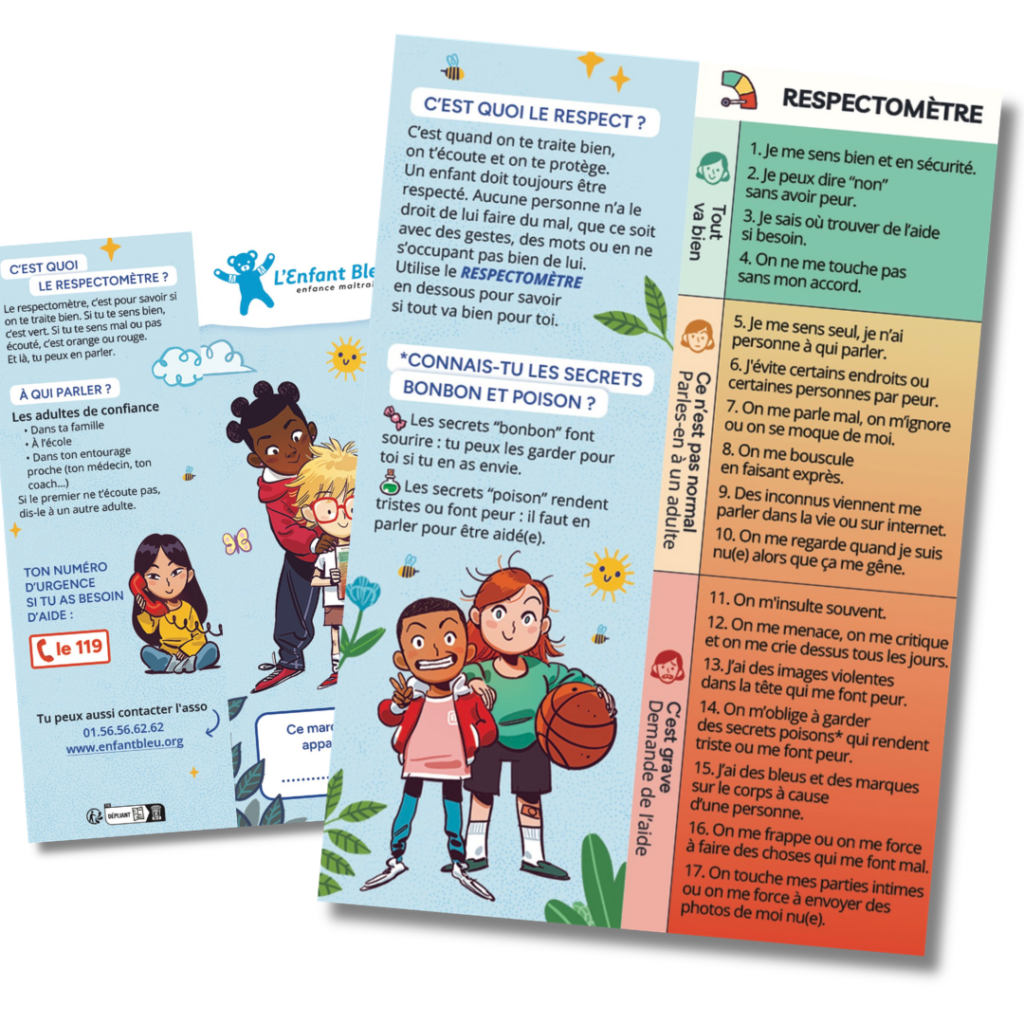 L’association L’Enfant Bleu apporte une réponse concrète et visuelle avec son « Respectomètre ». Ce marque-page coloré n’est pas qu’un simple bout de carton : c’est un formidable support pour éduquer à la protection de soi et au respect.