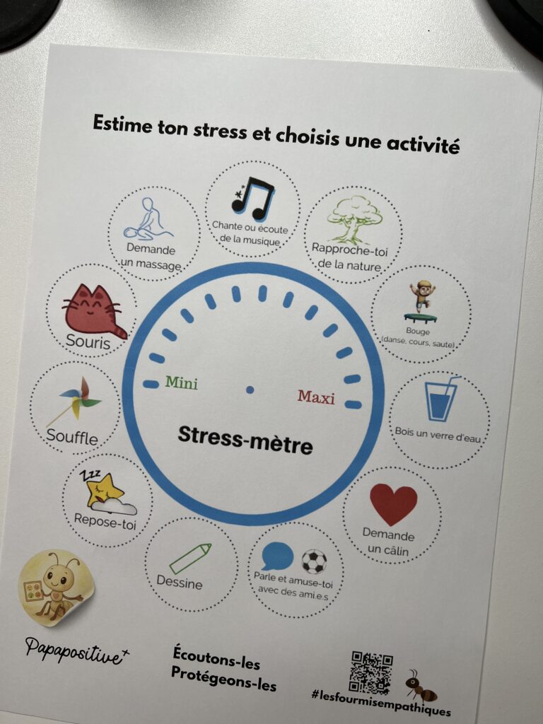 Le stress-mètre fait partie de ces outils simples qui peuvent vraiment aider les enfants à mettre des mots sur ce qu’ils ressentent et à trouver des solutions pour se calmer.
