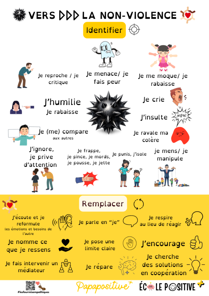 Dans votre famille. votre quartier, votre ville, votre école, … devenez les ambassadeurs de cette non-violence. Transmettez les informations, écoutez, guidez. Protégeons les enfants.