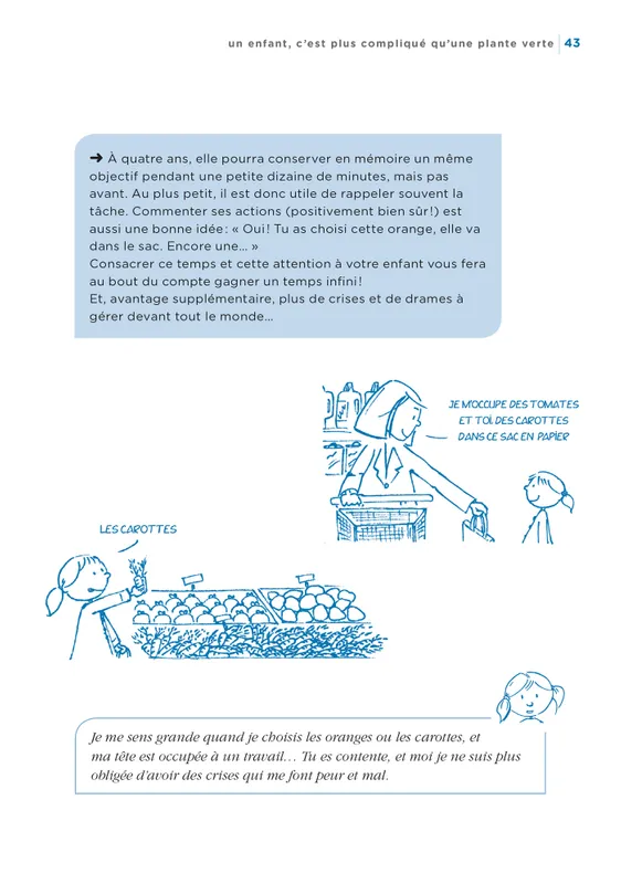 - en l’aidant à développer son empathie : « Qu’est-ce qui s’est passé avec ton frère ? As-tu une idée de ce qui l’a fait pleurer ? Demandons-lui. »