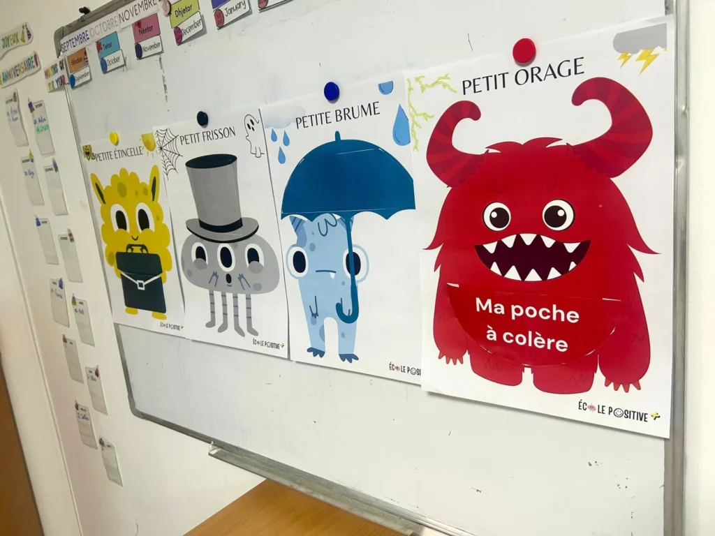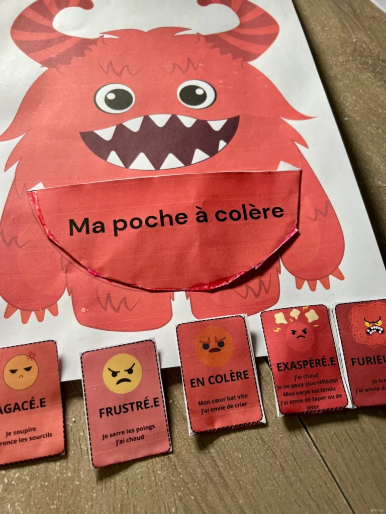 Grâce à sa poche, les enfants pourront choisir une carte qui correspond à l’intensité de l’émotion qu’il ressente, la lire, adopter une stratégie de régulation pour se sentir mieux .