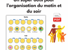 Je vous propose de tester un outil pour l’organisation du soir et du matin avec les enfants. Il s’agit d’une frise à assembler avec des vignettes qui correspondent